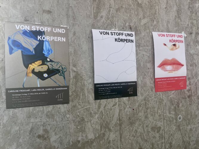 Ausstellungen | News „Von Stoff und Körpern: Präzise Erzählungen über Identität und Selbstbild“, Ausstellung mit Caroline Froissart / Lara Weiler / Gabrielle Zimmermann – KVFM, bis So. 26. 04. 2026 von admin / vor 2 Wochen